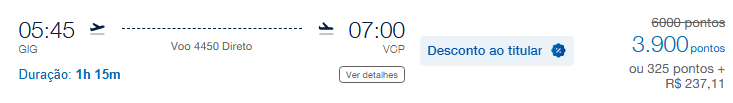 | Rio de Janeiro (GIG) | Campinas (VCP) | 3.900 | 6.000 | 2 de maio | Reserve aqui |