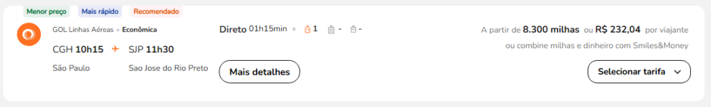 | Rio de Janeiro (SDU) | São Paulo (CGH) | 8.600 | 9.700 | 16 de maio | Reserve aqui |