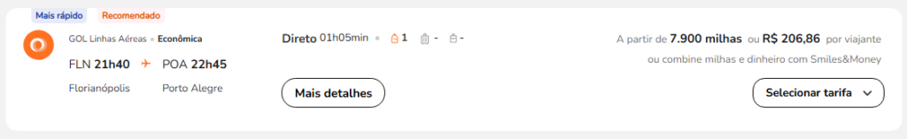 | Florianópolis (FLN) | Porto Alegre (POA) | 6.400 | 7.800 | 29 de maio | Reserve aqui |