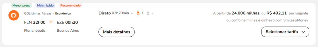 | Florianópolis (FLN) | Buenos Aires (EZE) | GOL | 24.000 | 26.000 | 24-Abril | Reserve aqui |