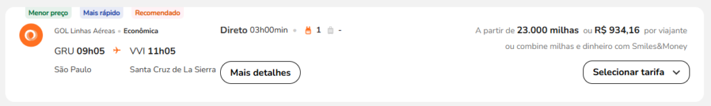 | São Paulo (GRU) | Santa Cruz de La Sierra (VVI) | GOL | 23.000 | 25.000 | 06-Junho | Reserve aqui |