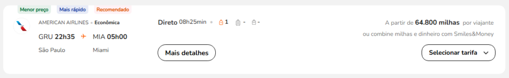 | São Paulo (GRU) | Miami (MIA) | American Airlines | 64.800 | 69.000 | 10 de fevereiro | Reserve aqui |