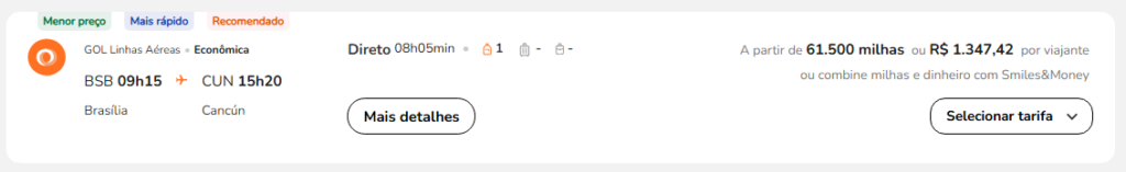 | Brasília (BSB) | Cancun (CUN) | GOL | 61.500 | 69.000 | 6 de agosto | Reserve aqui |
