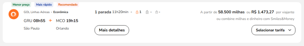 | São Paulo (GRU) | Orlando (MCO) | GOL | 58.500 | 65.000 | 8 de junho | Reserve aqui |