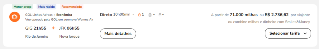 | Rio de Janeiro (GIG) | Nova York (JFK) | GOL/Wamos Air | 71.000 | 79.000 | 9 de agosto | Reserve aqui |