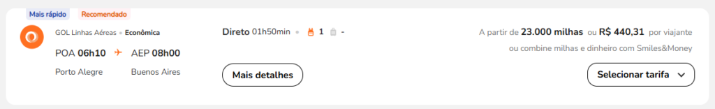 | Porto Alegre (POA) | Buenos Aires (AEP) | GOL | 23.000 | 25.000 | 15-Maio | Reserve aqui |