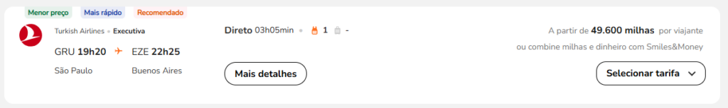 | São Paulo (GRU) | Buenos Aires (EZE) | Turkish Airlines (Executiva) | 49.600 | 53.000 | 05-Abril | Reserve aqui |