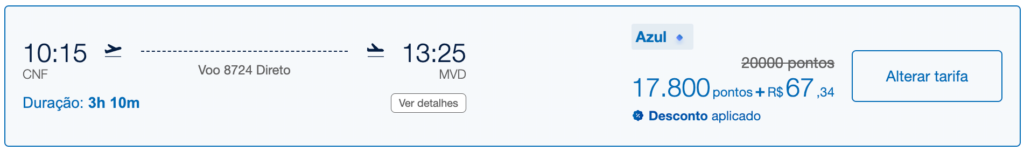 | Belo Horizonte (CNF) | Montevidéu (MVD) | Azul Fidelidade | Azul | 17.800 | 20.000 | 24 de junho | Reserve aqui |