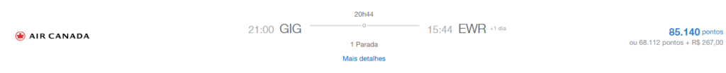 | Rio de Janeiro (GIG) | Nova Jersey (EWR) | Air Canada | 85.140 | 25 de novembro | Reserve aqui |