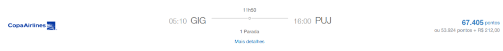 | Rio de Janeiro (GIG) | Punta Cana (PUJ) | COPA | 67.405 | 30 de maio | Reserve aqui |