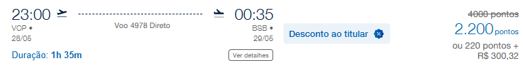| São Paulo (VCP) | Brasília (BSB) | 2.200 | 4.000 | 28-Maio | Reserve aqui |