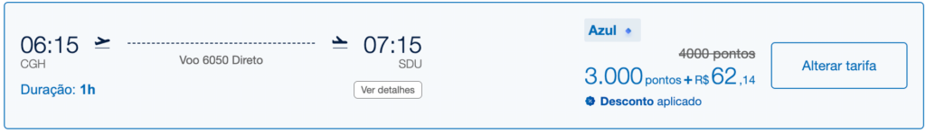 | São Paulo (CGH) | Rio de Janeiro (SDU) | 3.000 | 4.000 | 6 de outubro | Reserve aqui |