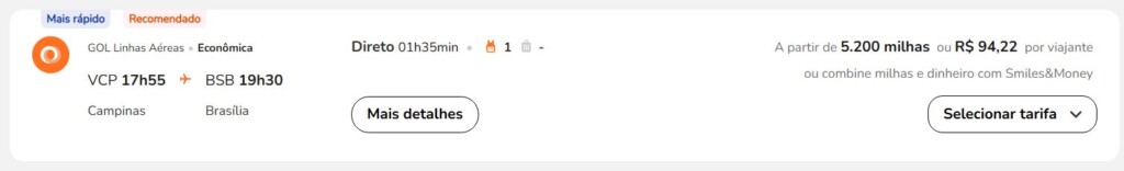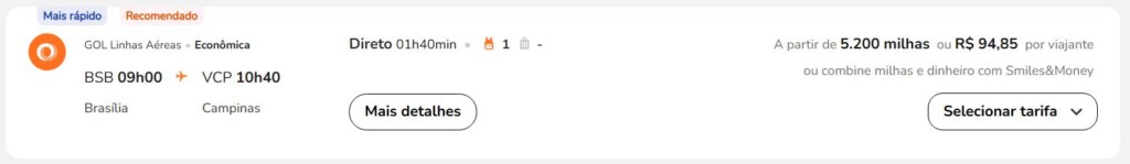 | Brasília (BSB) | Campinas (VCP) | 5.200 | 5.500 | 20-agosto | Reserve aqui |