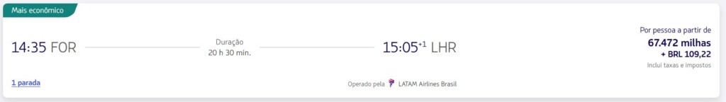 | Fortaleza (FOR) | Londres (LHR) | 64.742 | 14-outubro | Reserve aqui |