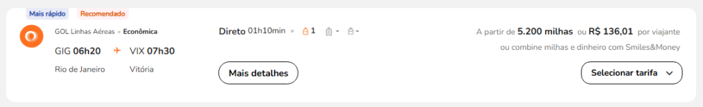| Vitória (VIX) | Rio de Janeiro (GIG) | 5.200 | 5.800 | 13 de julho | Reserve aqui |