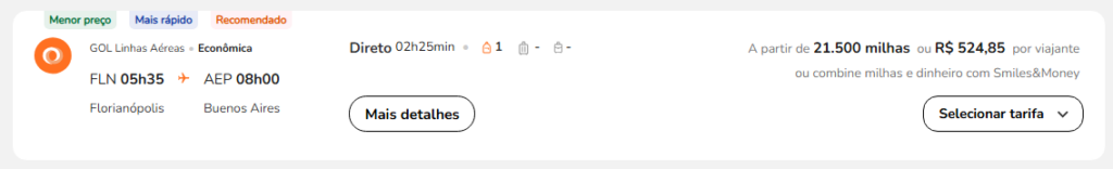 | Florianópolis (FLN) | Buenos Aires (AEP) | GOL | 21.500 | 24.000 | 28 de maio | Reserve aqui |