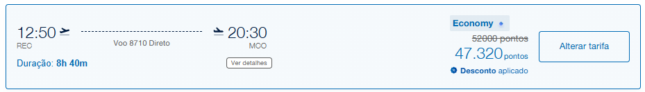 Disponibilidade encontrada por 47.320 pontos para clientes Diamante, ou 52.000 pontos para todos os clientes. Emita essa passagem aqui.