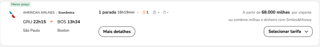 | São Paulo (GRU) | Boston (BOS) | American Airlines | 68.000 | 80.000 | 25 de outubro | Reserve aqui |