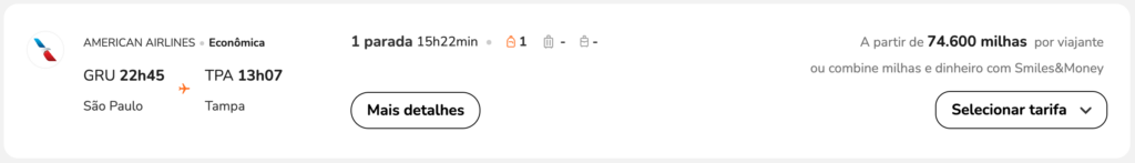 | São Paulo (GRU) | Tampa (TPA) | American Airlines | 74.600 | 79.000 | 27 de outubro | Reserve aqui |