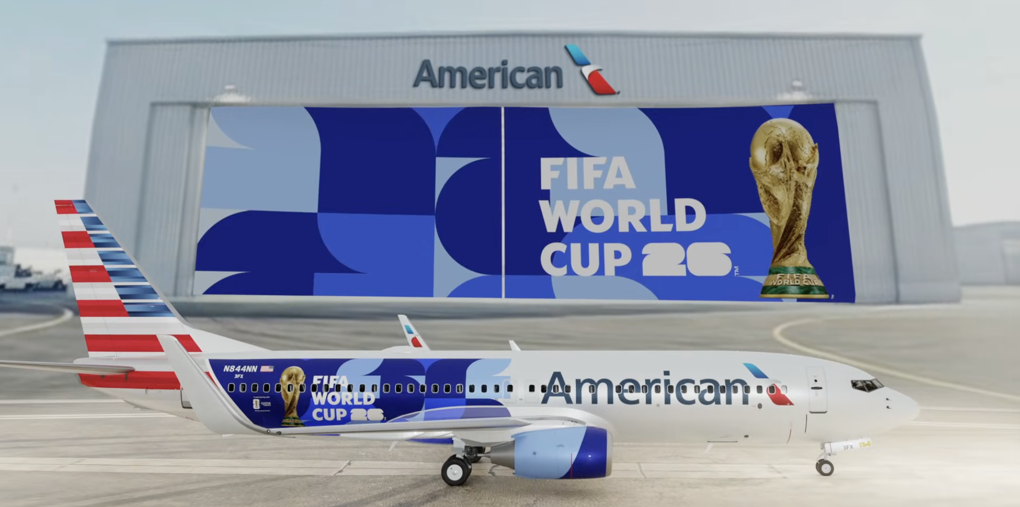 A American Airlines iniciou uma série de ações ligadas à Copa do Mundo de 2026, em parceria com a Qatar Airways, com destaque para a estreia de sua primeira pintura especial com temática esportiva.