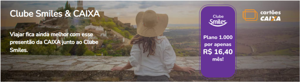 Para celebrar os 164 anos da Caixa Econômica Federal, a Smiles e Caixa oferecem plano com desconto exclusivo para novos assinantes. Até o dia 31 de janeiro de 2025, novos assinantes do Plano 1.000 podem aproveitar um desconto especial de 60% de desconto na mensalidade, pagando apenas R$ 16,40 por mês durante 12 meses.