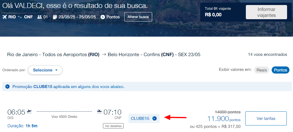 - Para obter os descontos apresentados, o titular da conta deverá ser um dos passageiros e não poderá haver alteração da quantidade de viajantes da reserva após o resgate da passagem aérea;