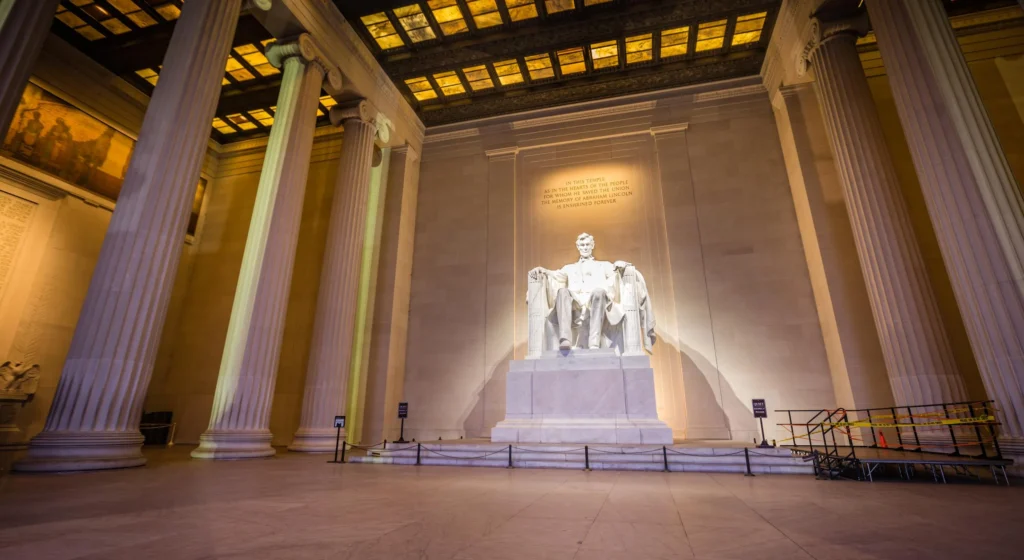 Nas paredes internas estão gravados os discursos de Gettysburg e da posse presidencial, ambos fundamentais na história dos EUA. A vista para o Reflecting Pool e o Monumento a Washington, especialmente ao pôr do sol, completa o cenário ideal para finalizar sua jornada por o que fazer em Washington D.C.