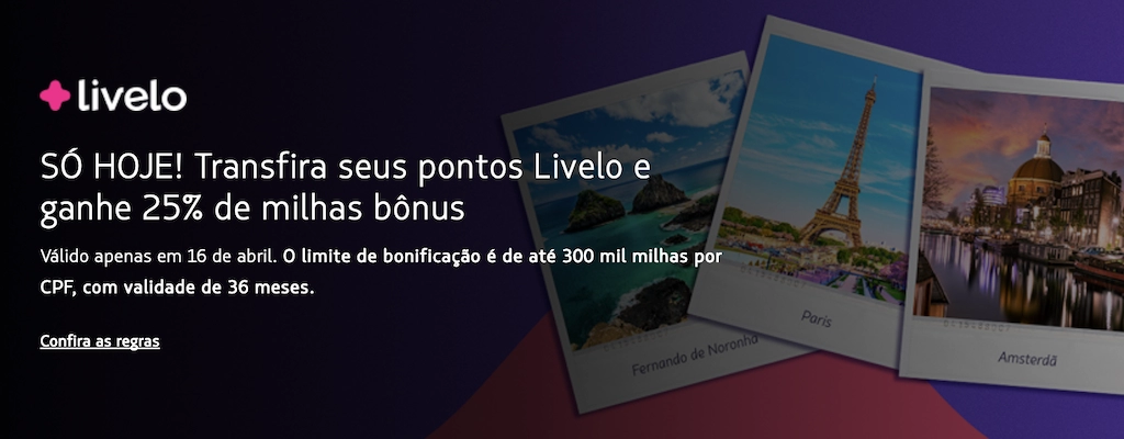 O LATAM Pass, em parceria com a Livelo, oferecem aos seus clientes 25% de bônus na transferência de pontos de todos os clientes. Essa oferta é válida apenas hoje, dia 16 de abril, e você confere os detalhes a seguir. Aproveite!