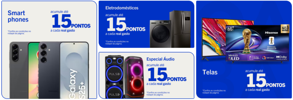 - Para acumular os pontos, os produtos precisam ser vendidos e entregues pelas Casas Bahia;