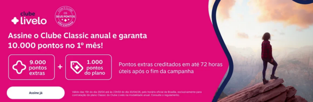 Esta promoção de assinatura do Clube Livelo está estruturada da seguinte maneira:
