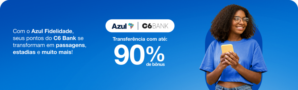 O Azul Fidelidade e o C6 Bank deram início a uma nova oferta! Ganhe até 90% de bônus na transferência de pontos! Mas fique atento, a promoção vale só até o dia 27 de março. Confira todos os detalhes e não perca essa chance.