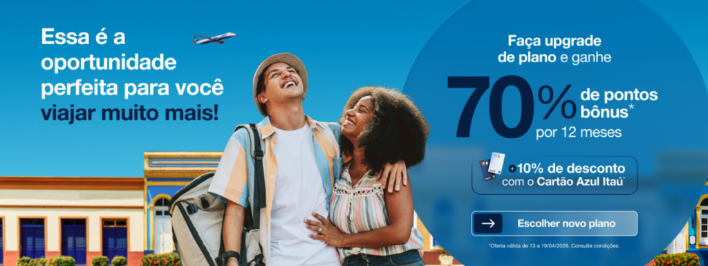 O Azul Fidelidade está com uma nova oferta para seus clientes, oferecendo 70% de bônus no upgrade do clube anual. A campanha é válida até 19 de abril. Confira abaixo os detalhes e veja como aproveitar essa oportunidade!