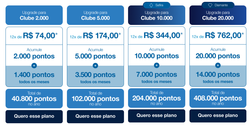 Abaixo iremos analisar o upgrade de cada um dos planos do Clube Azul na modalidade anual. Confira na sequência:
