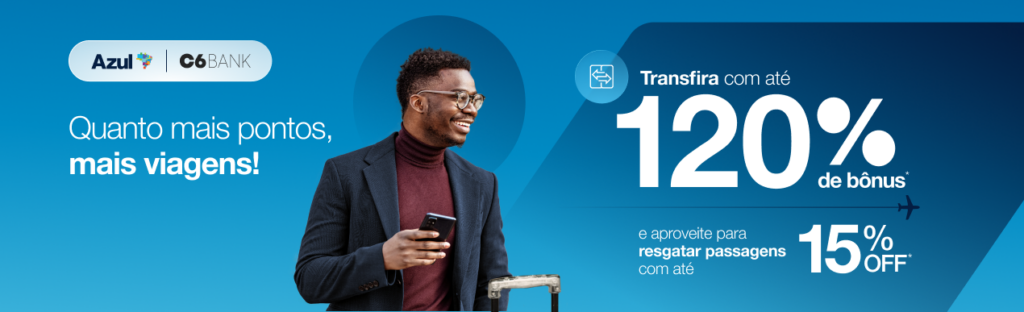 O Azul Fidelidade, em parceria com o C6 Bank, oferece aos seus clientes até 120% de bônus nas transferências de pontos para o programa. A promoção é válida até 15 de abril, e você confere tudo a seguir!