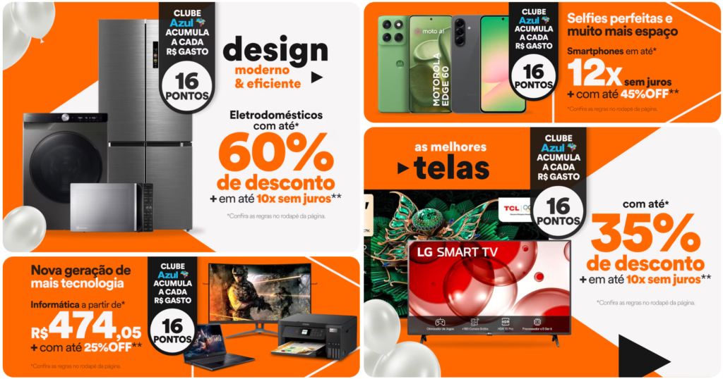 - 16 pontos por real – assinantes do Clube Azul