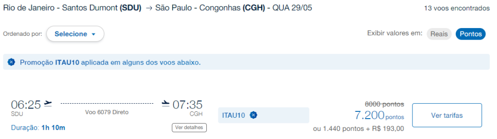- ITAU10 – Passagens em pontos