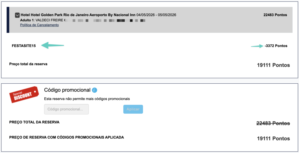 - O desconto é válido para reservas com pontos ou reais;