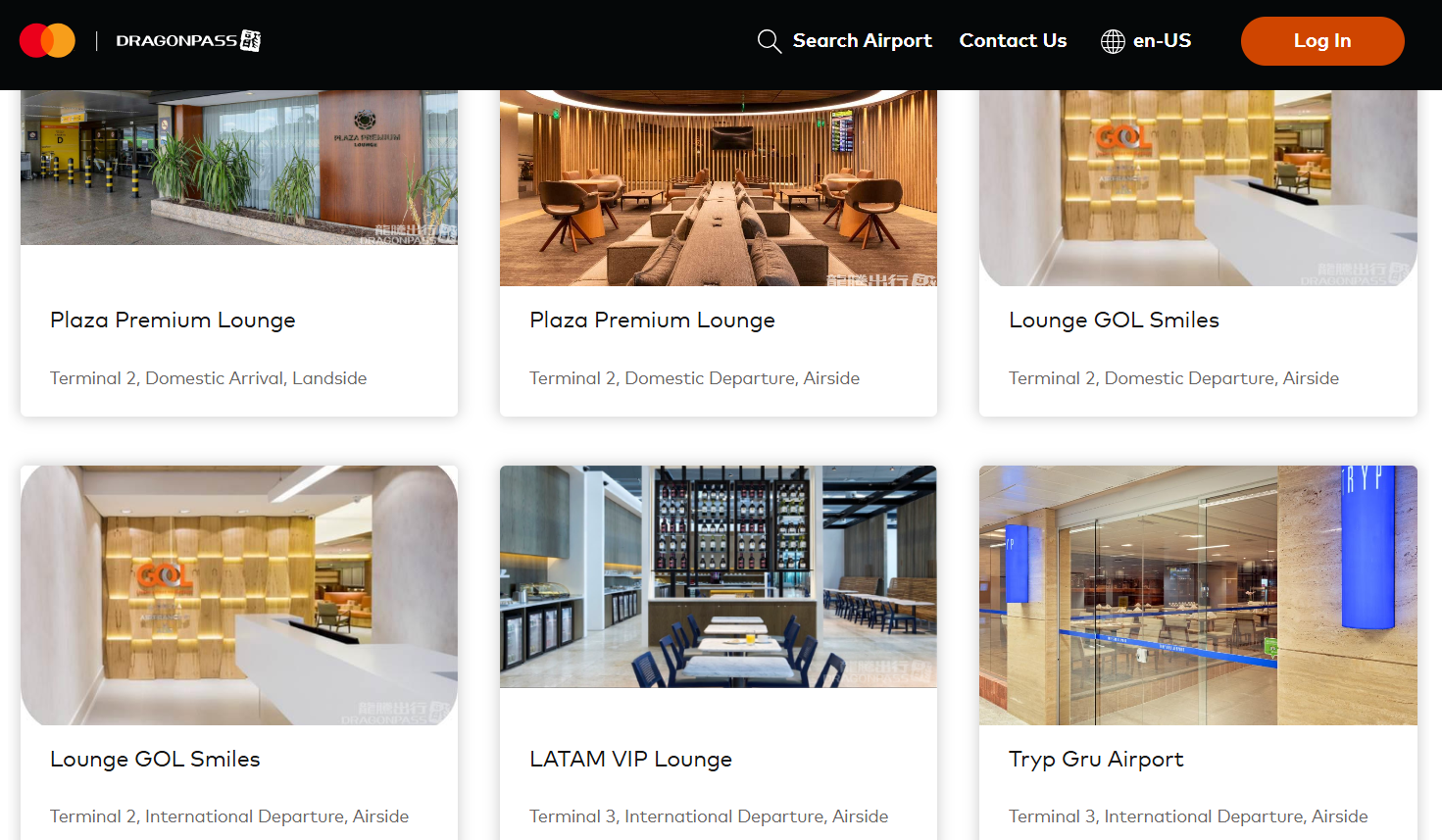 Para ilustrar a situação, mostro abaixo os 6 lounges conveniados do DragonPass, no Aeroporto de Guarulhos: