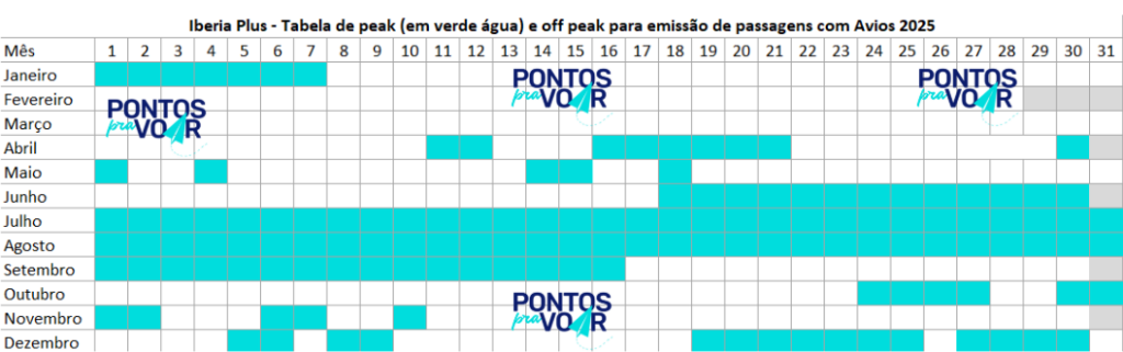 Calendário de Alta e Baixa Estação da Iberia para 2025