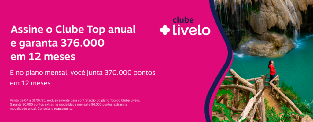 A Livelo está com uma oferta para quem deseja assinar o Clube Livelo Top. Na modalidade anual, o cliente acumula 376.000 pontos ao longo de 12 meses. Já na modalidade mensal, o total chega a 370.000 pontos no mesmo período. Veja os detalhes a seguir.