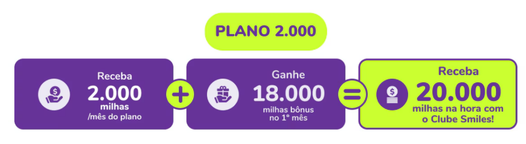 As milhas serão creditadas na hora da adesão ao clube, sendo 18.000 milhas bônus e 2.000 milhas do clube.