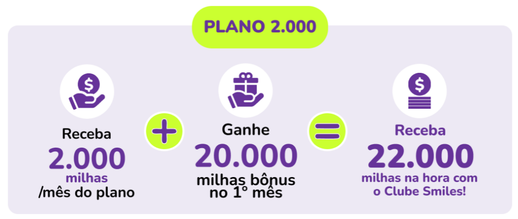 As milhas serão creditadas na hora da adesão ao clube, sendo 20.000 bônus e 2.000 do plano.