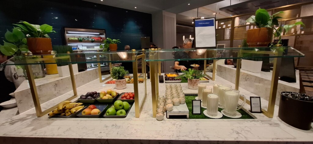 Das 18h00 até as 20h00 o Executive Lounge servia um buffet com diversas opções de bebidas, alguns pratos quentes, saladas, frutas, e queijos
