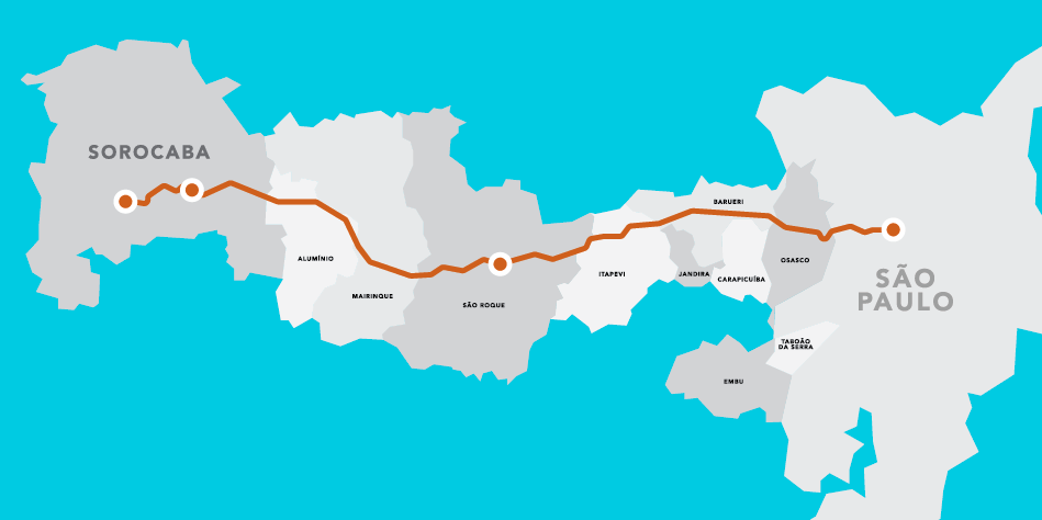 O percurso ferroviário terá aproximadamente 90 km de extensão e vai desde a Estação Ferroviária de Sorocaba, que será reativada, até a Estação Água Branca, que deve se transformar em um hub de transportes. Uma parte desse caminho será no mesmo leito da histórica Estrada de Ferro Sorocabana. O investimento total, em 30 anos, é de R$ 12 bilhões.