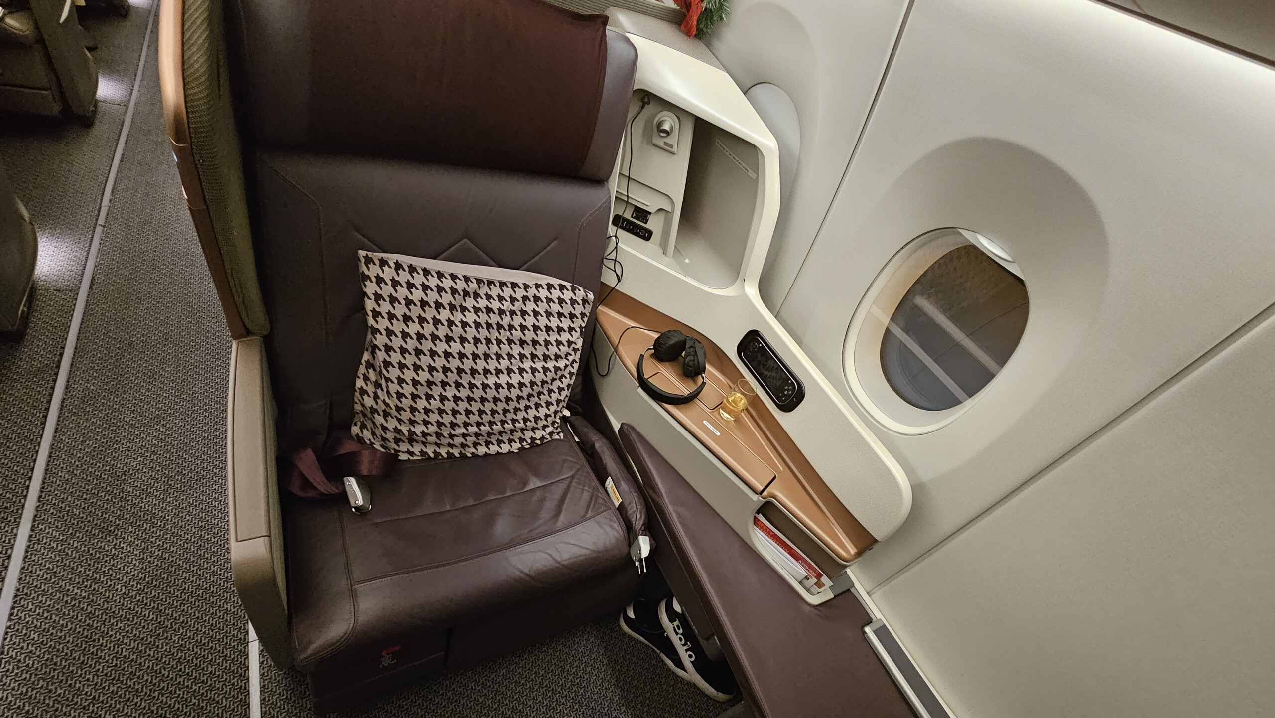 Também achei muito boa a experiência na classe executiva da Singapore, mas convém destacar que consegui marcar os assentos na fileira 19 do A350-900, nas quais o apoio dos pés não se limita ao pequeno espaço na diagonal, como ocorre nos demais assentos (à exceção a fileira 11).