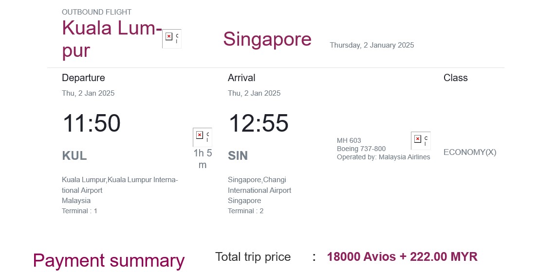 Neste post falamos sobre uma emissão que realizei com milhas para uma viagem em família em classe econômica, de Kuala Lumpur para Singapura, voando com a Malaysia (MH), com avios do Privilege Club da Qatar.
