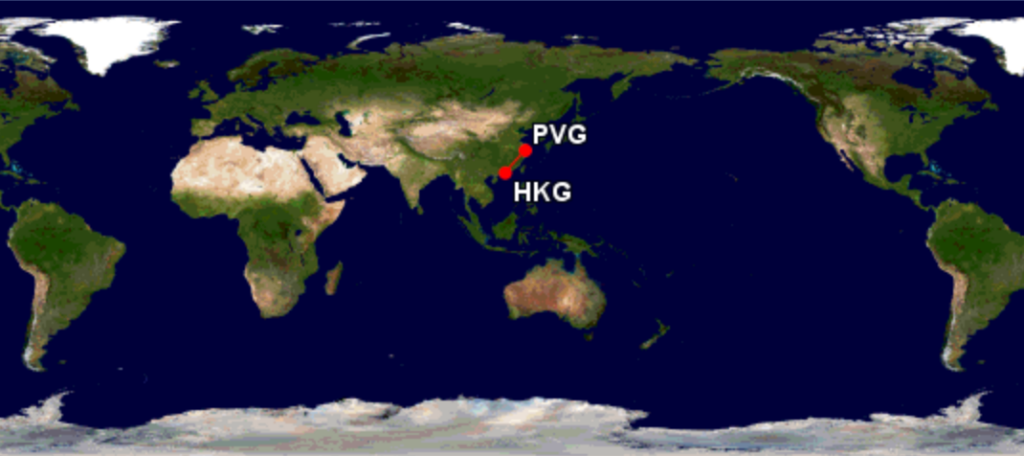 A Cathay Pacific (CX), no trecho de Shanghai para Hong Kong (PVG-HKG), utiliza um A330-300, com duas classes de cabine (executiva e econômica), total de 293 assentos, com configuração 2-4-2 na classe econômica: