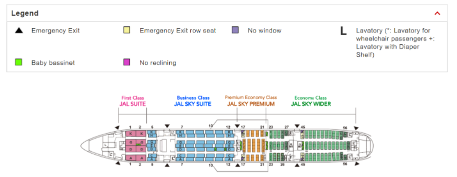 Mapa de assentos do B777-300ER da JAL – Fonte: site da JAL.
