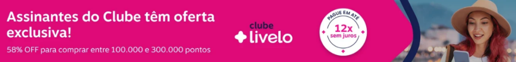 - 58% de desconto – Exclusivo para os assinantes do Clube Livelo