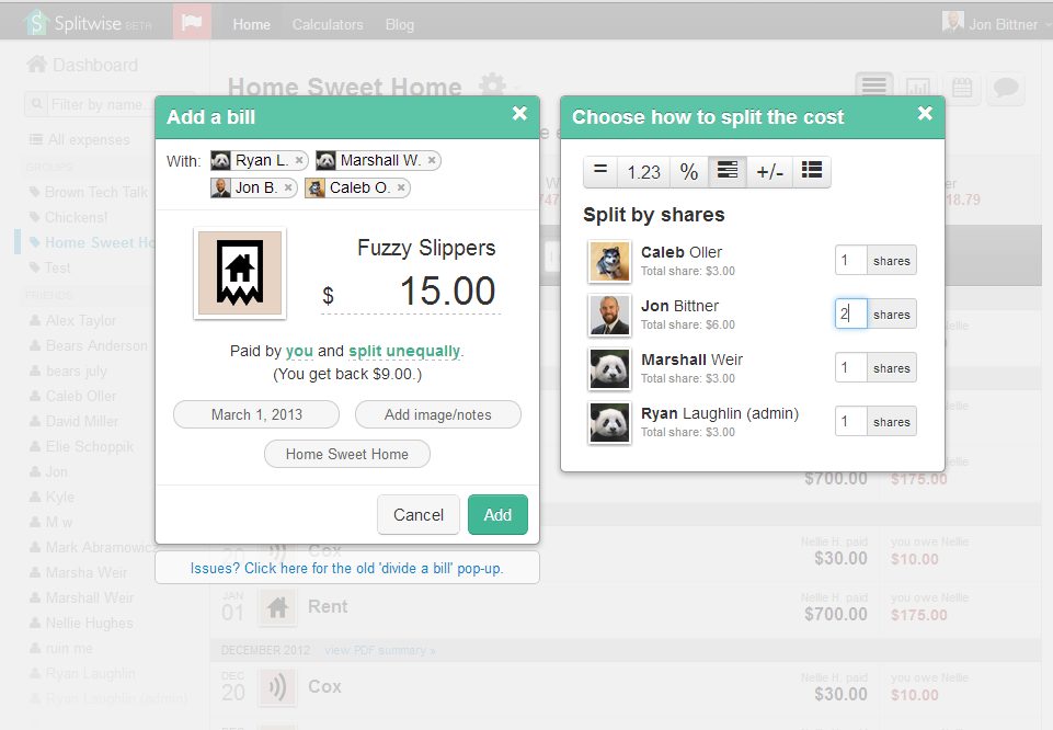 Com muita facilidade os usuários cadastram as despesas comuns e o app faz todo o cálculo de quem deve quanto para quem. A vantagem se sobressai em situações mais complexas, como quando alguma pessoa paga R$60 em dinheiro para uma compra no supermercado e uma segunda pessoa complementa o pagamento com mais R$40 no cartão.